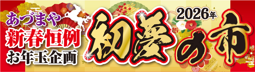 ![]() 1月4日(日)~8日(土) 但馬・養父店 ところ 養父市上野1173-6 地図はこちら TEL 079-664-0118 1月14日(水)~18日(日) アクタ西宮店 ところ 西宮市北口町1-1アクタ西宮西館2F 地図はこちら TEL 0798-66-8066 ![]() 同時開催 アクタ西宮東館2F中央広場特設会場 webをご覧の方 たとう紙 プレゼント‼ ご来店時に「ホームページを見た」とお伝え下さい |